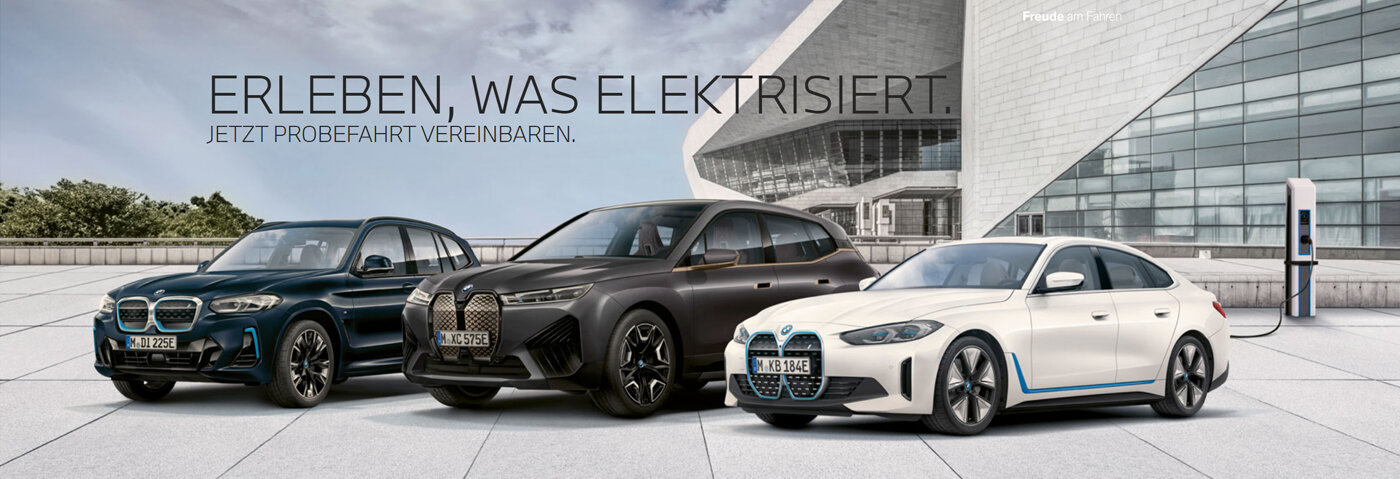 Gestalten Sie den Alltag frei von Sorgen dank beeindruckender Reichweiten und den individuellen und maßgeschneiderten Ladelösungen von BMW Charging. Seien Sie bereit für ein emotionsgeladenes Fahrerlebnis: Überzeugen Sie sich von der herausragenden Dynamik unserer vollelektrischen BMW Modelle oder entdecken Sie die kombinierte Kraft von effizientem Verbrennungs- und leistungsstarkem Elektromotor in einem BMW Plug-in-Hybrid Modell – ein Maximum an Vielfalt und Individualität für jeden Lebensstil.