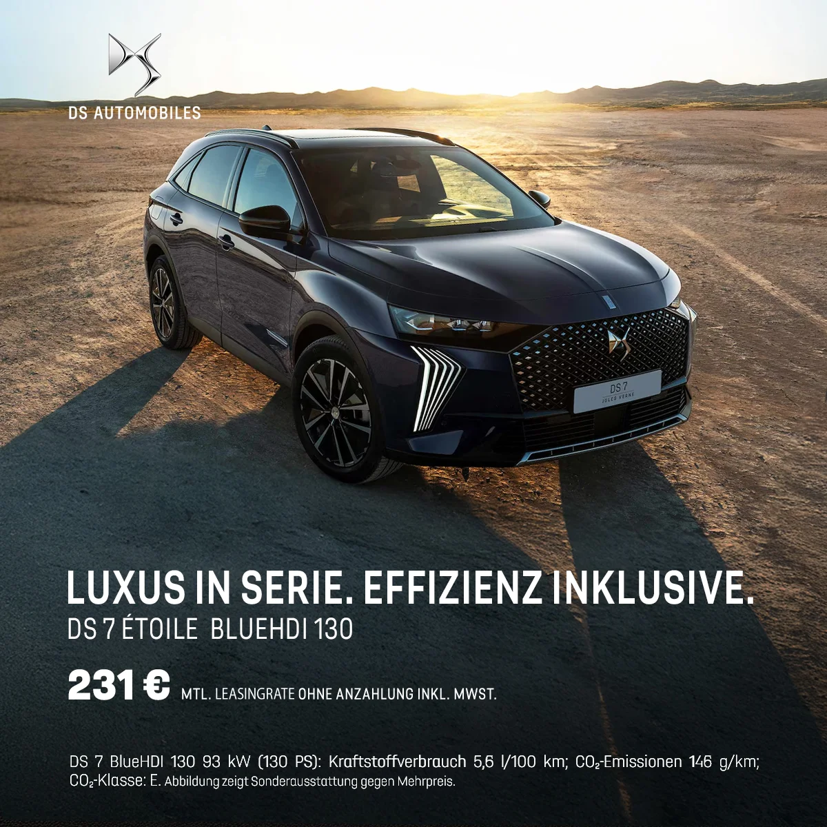 Der neue DS 7 BlueHDi 130: Luxus in Serie. Effizienz inklusive.