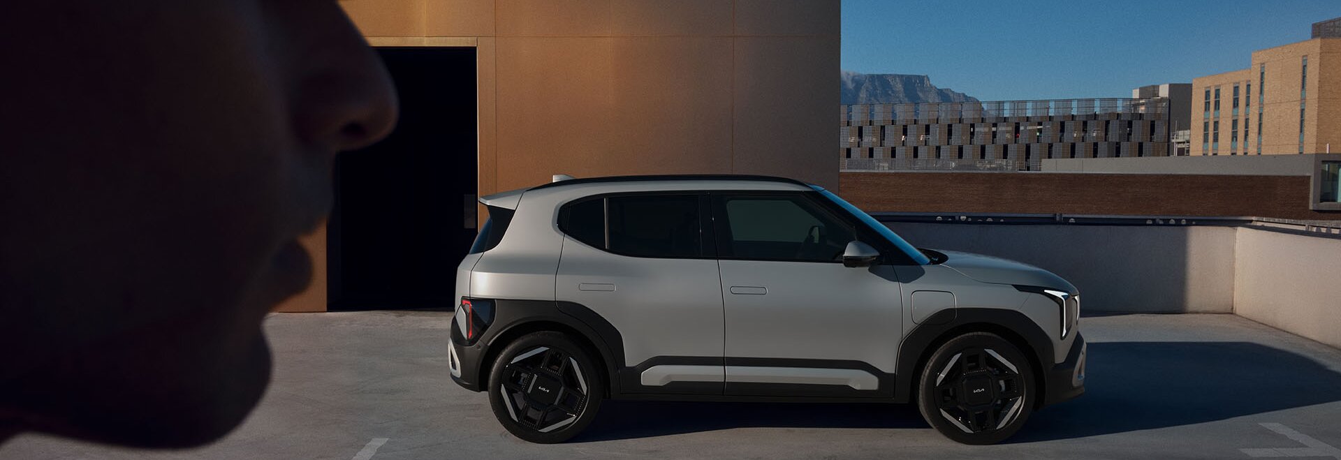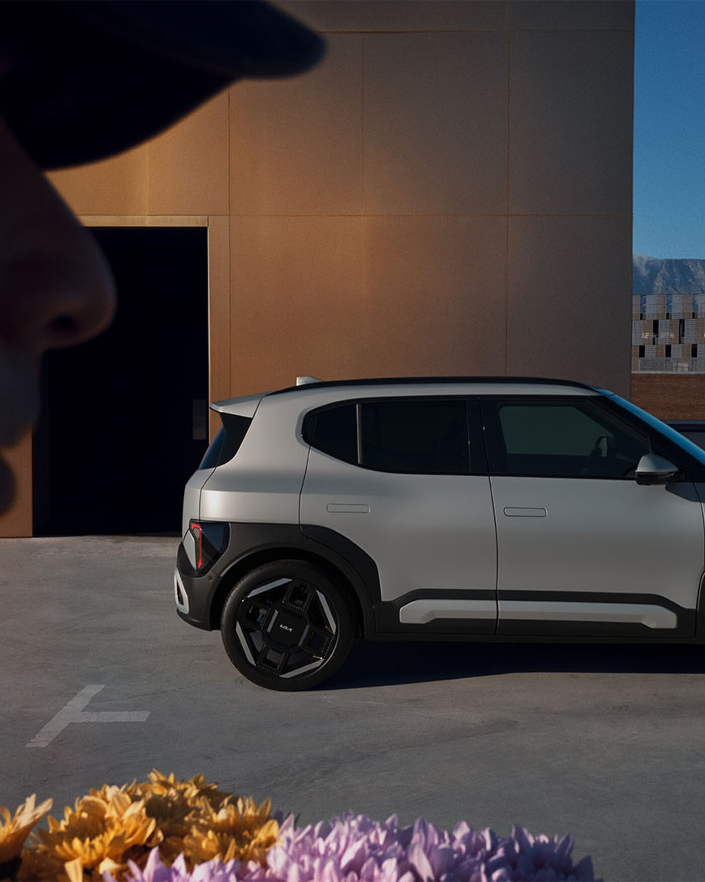 Die markante Schulterlinie und die kompakten Proportionen verleihen dem Kia EV2 eine harmonische Verbindung aus dynamischer Agilität und kraftvoller Ausstrahlung.