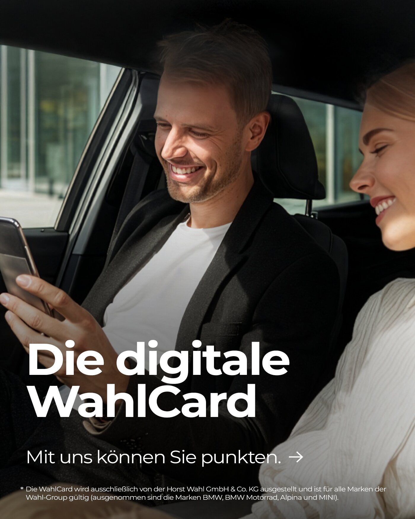 Wir schätzen Ihre Treue. Mit der digitalen WAHL Kundenkarte bedanken wir uns herzlich für Ihre Loyalität und bieten Ihnen ein noch attraktiveres Serviceerlebnis in unserem Autohaus.